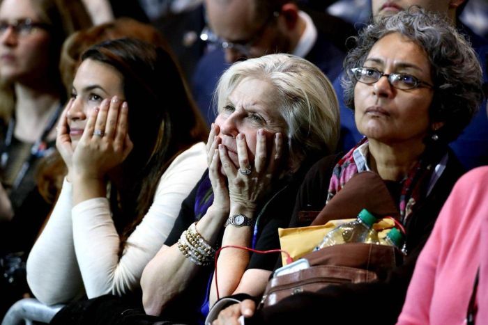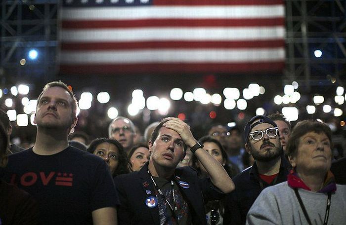 В ходе президентских выборов в США лидерство несколько раз переходило от одного кандидата к другому, а потому до последнего момента не было ясно, кто же станет 45-м президентом. Далее предлагаем взглянуть на огорченные лица сторонников Хиллари Клинтон, которых очень расстроила победа Дональда Трампа.