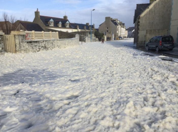 На Европу обрушился шторм «Имоджен», в результате которого улицы небольшого города Пенмарш оказались покрыты толстым слоем морской пены. Это не первый подобный случай, однако жители города не удержались от соблазна поделиться снимками в социальных сетях.