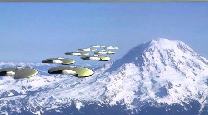 Случай в Каскадных горах произошел 24 июня 1947 года. Частный пилот Кеннет Арнольд утверждал, что он видел линию из девяти блестящих неопознанных летающих объектов, которые мирно летели мимо горы Рейнир, штат Вашингтон. Историю не смогли проигнорировать и общенациональные новости: с тех пор описание Арнольда стало стандартным клише для большей части страны.