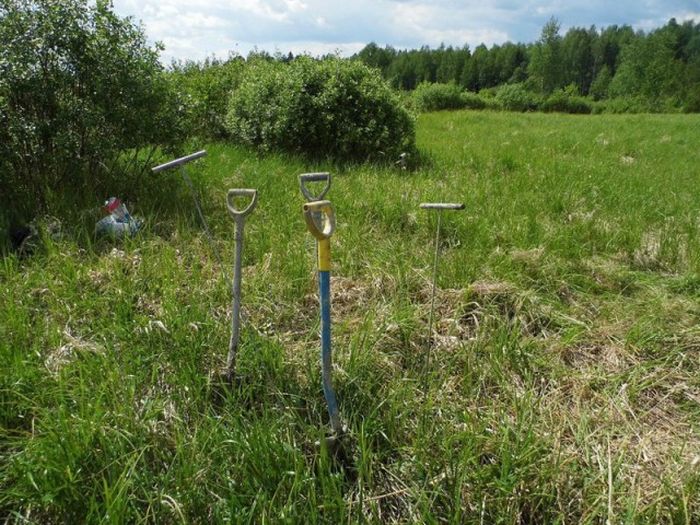 Раскопки этого блиндажа велись летом 2016 года в полях в Ленинградской области на местах ожесточенных сражений в годы Великой Отечественной войны. Блиндаж оказался немецким, он относился к 1942 году и в нем располагались танкисты. Далее предлагаем взглянуть на находки, сделанные в этом самом блиндаже, а также на то, как происходил сам процесс раскопок.