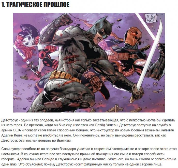 Волнующим дополнением фильма является главный злодей, Детстроук в исполнении Джо Манганьелло. Этот персонаж, также известный под именем Слэйд, никогда еще не появлялся в полнометражных фильмах. Для тех, кто не знаком со злодеем, ниже представлены 5 фактов, почему стоит увидеть дебют Детстроука.