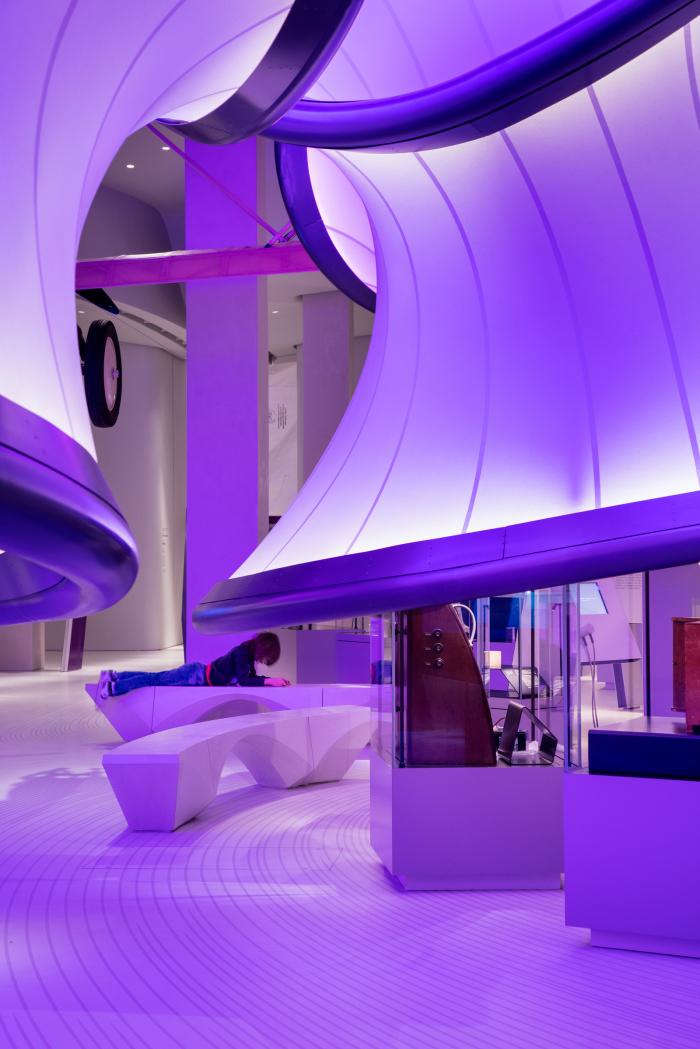 Текучие поверхности, формирующие пространство галереи, визуализируют аэродинамическое турбулентное векторное поле, создаваемое самолётом, помещённым в центр экспозиции. Аэроплан авиаконструктора Хэндли Пейджа, отличившийся в конкурсе 1929 года Guggenheim Safe Aircraft Competition, стал знаковой вехой в развитии гражданского воздухоплавания, сделав этот вид транспорта доступным для простых людей.