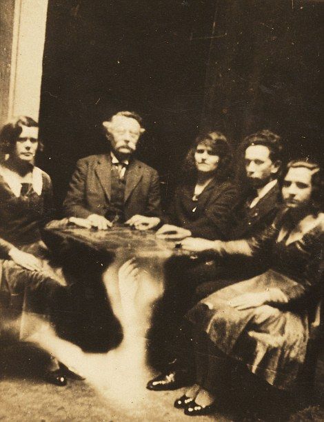 Фото, которые ждут вас далее, были сделаны британским фотографом-спиритуалистом Уильямом Хоупом (William Hope) и наделали немало шума в первой трети XX века. В те годы общество было увлечено мистикой и спиритизмом, а потому снимки Хоупа с изображением «призраков» получили большой успех. В 1920 году Хоуп устраивал выставки, показывая свои фотографии всем и везде, и многие были уверены в том, что они действительно видят приведений. Позже выяснилось, что далеко не все фото были подлинными, так как Хоуп зачастую использовал двойную экспозицию, в результате чего на пленке оставалось двойное изображение.
