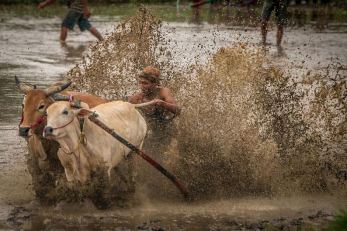 Традиционная гонка на быках, известная как "Pacu Jawi", проходит в Паданге, Западная Суматра, Индонезия. Каждый год перед посадкой риса фермеры демонстрируют свой скот на этих соревнованиях перед потенциальными покупателями. За многие годы состязания стали главным событием года для местных жителей. Эти увлекательные кадры сделал фотограф и эксперт по кибербезопасности Дэ Хан Лин (Teh Han Lin) 12 марта 2016 года во время визита в Индонезию.