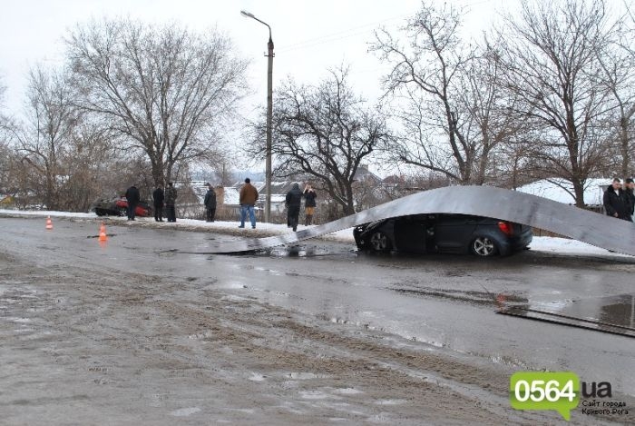 Это довольно необычное ДТП произошло в городе Кривой Рог на Украине, а его виновником стал длинномер МАЗ, перевозивший крупногабаритный листовой прокат. Три листа металла слетели с него при въезде на дамбу, и один из них весом в 3 тонны, накрыл автомобиль Honda, движущийся в попутном направлении. Давайте посмотрим, во что превратился автомобиль при таком ДТП.