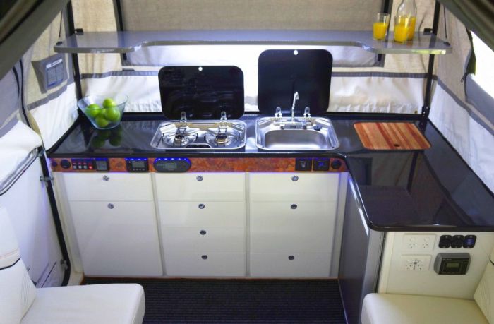 Среди любителей автопутешествий набирают популярность внедорожные прицепы, с помощью которых можно посетить те места, которые остаются недоступны обычным домам на колесах и кемперам. Австралийская компания Ultimate Campers производит внедорожные прицепы, которые можно смело цеплять к своему внедорожнику и отправляться на покорение неизведанной доселе местности. Такие прицепы обладают компактным размерами, отличной аэродинамикой и небольшими габаритами. При этом в прицепе есть все то, что необходимо путешественнику: палатка, кухонный стол, раковина, холодильник газовая плита и большая двуспальная кровать. Стоит такое удовольствие недешево, так версия Ultimate Nexus Teardrop оценивается в 50 000 долларов, хотя есть и менее дорогие вариации.