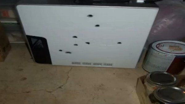 Несколько месяцев 37-летний американец боролся с компом,и так его всё достало, что он просто расстрелял тупую железку на улице. Если не работает Ctrl-Alt-Del, то просто убей его! Восемью выстрелами комп был умерщвлен.