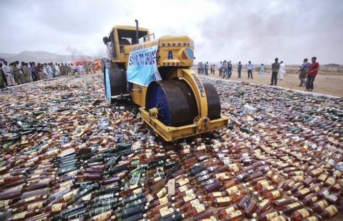Уничтожение алкоголя в Пакистане (4 фото)